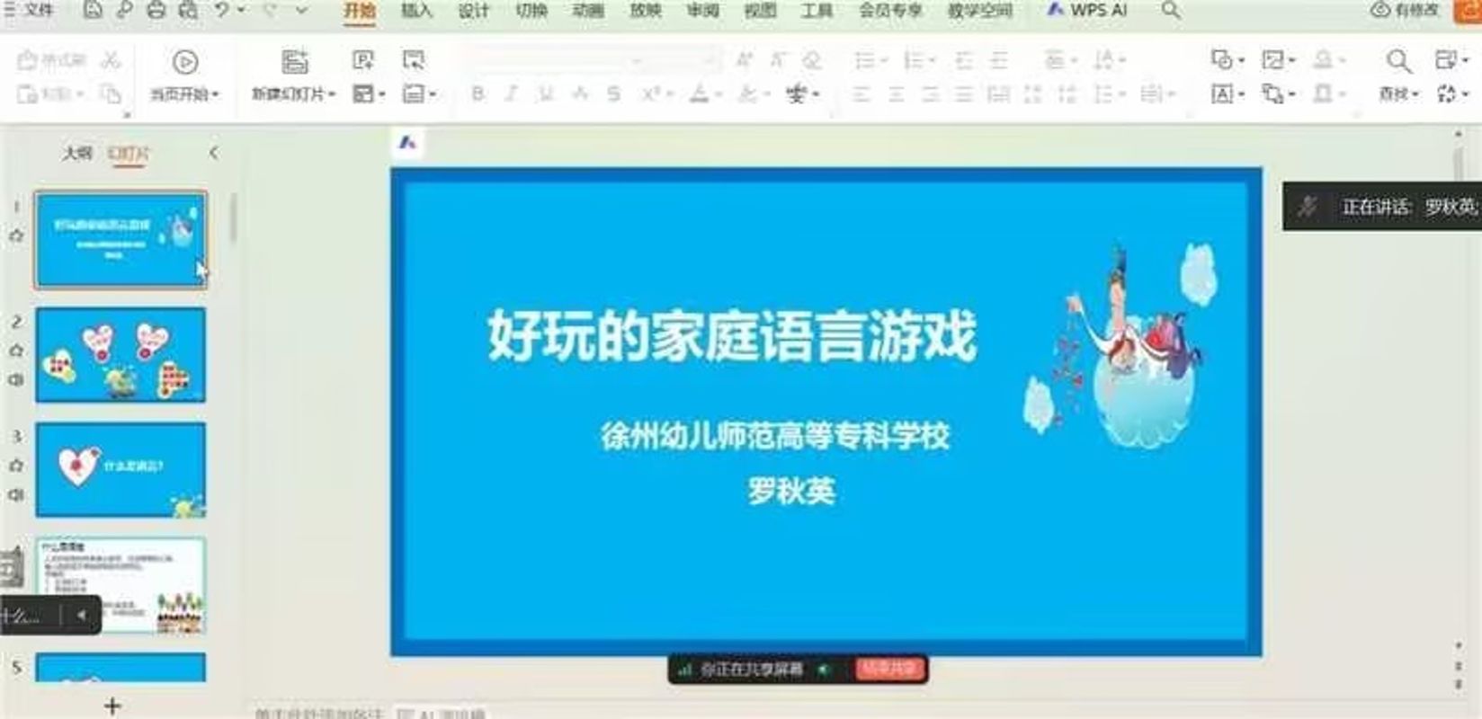 首场讲座特邀徐州幼儿师范高等专科学校三级教授、硕士生导师罗秋英老师,作题为《好玩的亲子语言游戏》的专题分享。罗秋英老师是学前教育国培专家讲师,长期深耕于学前儿童心理发展与教育研究,主持多项省级重点规划课题与精品课程,主编《儿童观察与研究》等教材,发表学术文章二十余篇,兼具扎实的理论素养与丰富的实践经验。