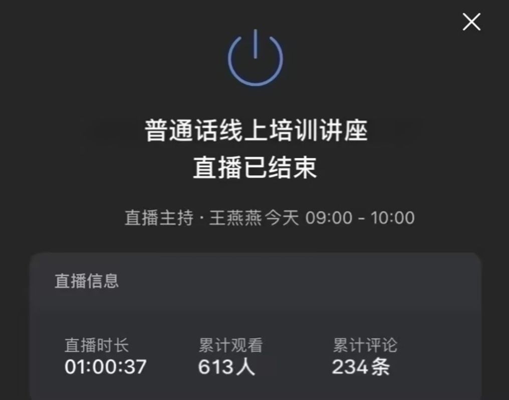 讲座内容贴近实际、注重实效,获得参训教师的一致好评。据统计,本次直播共吸引青海、贵州、云南、江苏、四川、上海、新疆、内蒙古等省区市613名教师在线学习。通过本次培训,教师们进一步掌握了命题说话的技巧与方法,不仅有助于提升自身普通话应试能力,也对在民族地区开展国家通用语言教学具有积极的推动意义,为持续实施“百园千师万家工程”、促进学前教育语言质量提升积累了宝贵经验。