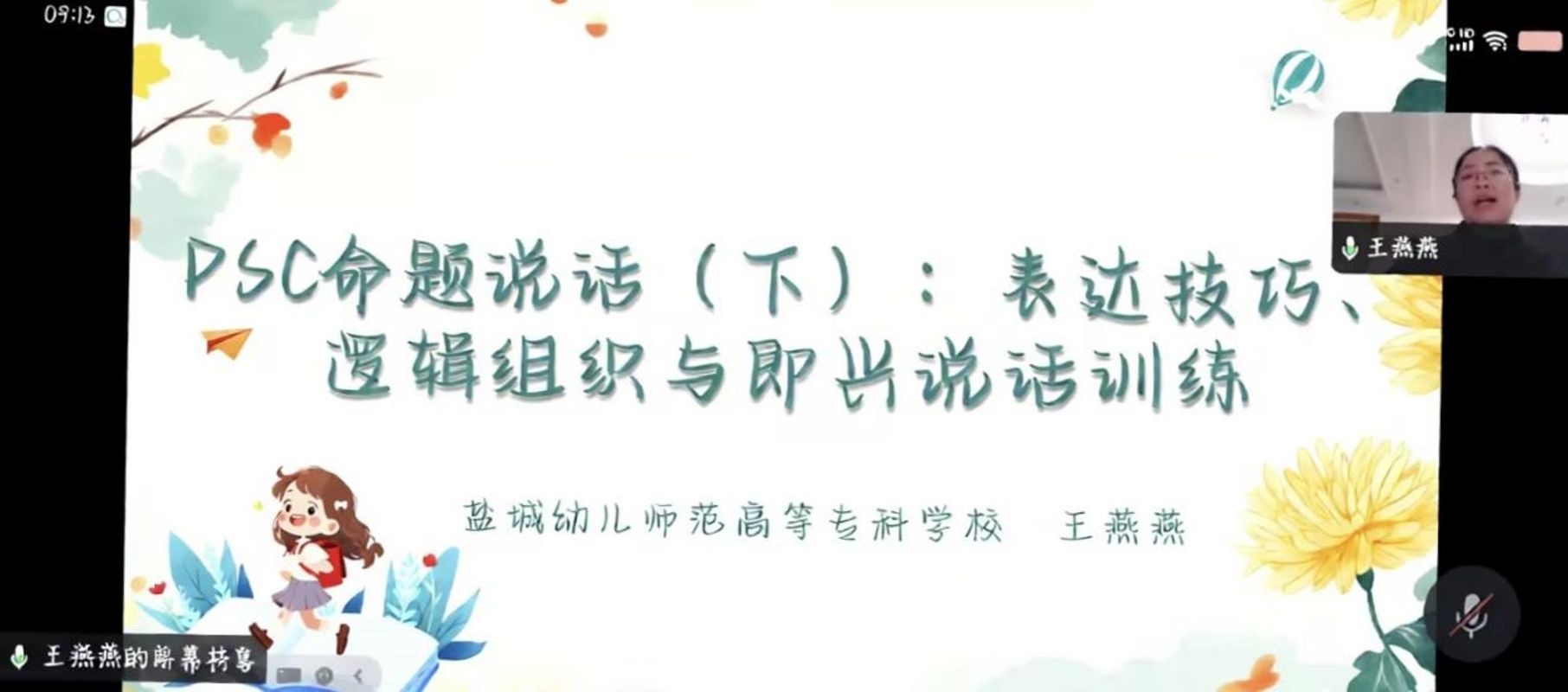 2025年12月20日上午,由我校国家语言文字推广基地主办的“百园千师万家工程”系列培训第九场讲座顺利举行。本期活动继续以线上形式开展,通过企业微信平台面向中西部民族地区及东部省市幼儿园教师,开展了“普通话水平测试(PSC)命题说话”的系统解读与教学指导。讲座由基地办公室于丹丹老师主持。